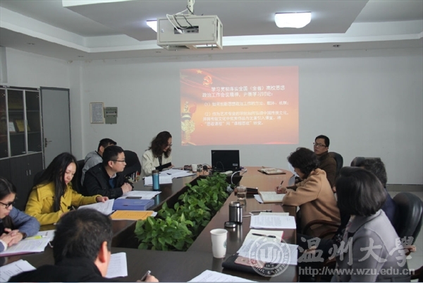 3月14日,beat365亚洲体育在线官网召开党务工作例会暨理论中心组(扩大)学习会议,深入贯彻落实全国(全省)高校思想政治工作会议精神。学院领导班子成员,党总支委员,各支部书记及科室负责人等参加了会议。会议由院党总支书记张丽萍主持。 在学院党务例会上,张丽萍传达了学校党务工作例会主要精神,着重强调会上提出的要扎实推进理论武装工作、大力加强基层党组织建设、严格落实从严治党的两个责任、努力打造高水平的干部队伍、继续提升思想政治工作以及切实维护校园安全稳定等。张丽萍对2017年学院党建工作做了重要部署,从加强基层组织建设、加强思想政治工作、深化学风建设、探索大学生创新创业机制、凝练校园文化品牌等方面着手,重点抓好25项具体工作,为推进学院发展提供坚强有力的保障。 在中心组理论学习扩大会上,与会全体积极献言献策,就深入贯彻落实全国(全省)高校思想政治工作会议精神展开大讨论。会议认为,思想政治工作如何创新方式方法、创新机制载体尤为重要。会议提出,要建立回归本真的师生关系,使师生关系始终建立在“教”与“学”为基础的知识和技能上,避免师生关系被“工具化”;要充分利用校园文化建设的各类载体开展润物无声的教育工作,如从景观建筑“溯初亭”来探索温大的历史故事;要挖掘日常生活的典型案例,保有思想政治教育的真实与丰满。会议还提出,思想政治工作根本上是做人的工作,只有紧紧围绕学生、关照学生、服务学生,要努力在全院形成立德树人的合力。会议认为,思想政治工作进课堂尤为必要,要将“思政课程”向“课程思政”转变。要推动专业课程去挖掘更多的精神养料,将传统文化如书画、建筑、服饰等蕴含的德育意识融入专业教学,增加专业课程的厚度与温度;要利用学生艺术采风等实践课程,去深刻理解德育教育的历史和现实意义;要充分挖掘温州特有的传统文化项目,作为专业德育课程的丰富教育资源。