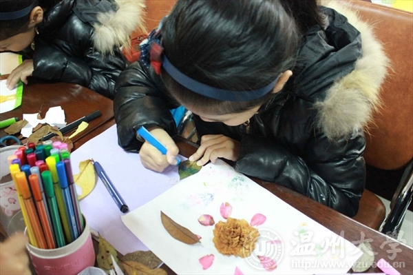 2017年3月18日,温大beat365亚洲体育在线官网"艺家人"青年志愿者协会成员和志愿者们共同前往梅泉社区文化礼堂,进行了以“有趣的叶子”为主题的手工DIY活动。 活动在欢声笑语中拉开序幕,小组代表周岚茜同学以一组树叶画引入今天的主题,倡导小朋友们走进大自然收集各种各样的树叶,细心观察,并对所收集的树叶进行初步了解;接着引导小朋友们观察自己的树叶,并和其他小朋友交流,讨论出更好的制作方法。每个小朋友都有不同的想法:“我想制作一个皮卡丘,我想制作一个长胡须的猫咪,我想制作一个海底世界”。在志愿者们的引导下,小朋友们根据自己的想象,用粘、剪、画相结合的方法,巧用树叶制作出各种图形的“树叶画”,有的小朋友用蜡笔先画图后用叶子进行装饰,有的直接将叶子剪出自己所想要的形状,多种不同方法的运用使整幅画面生动起来。在活动期间,志愿者们各司其职,充满热情。 此次支教活动的目的是为了培养小朋友们从小热爱大自然的感情,锻炼他们学会观察,善于发现,动手动脑的能力,在玩耍中学会欣赏并感受春天的美丽,激发热爱自然,热爱生活的情感。通过指导小朋友们掌握树叶贴画的制作方法、技巧,利用落叶进行美的再创作,开发他们丰富的想象与创造力,培养其发现美,创造美的能力,并养成小朋友们团结协助的精神品质,感受到参与活动的乐趣和成功的喜悦,并学会大胆地表达自己的感受。文:王 伟 图:朱灵睿