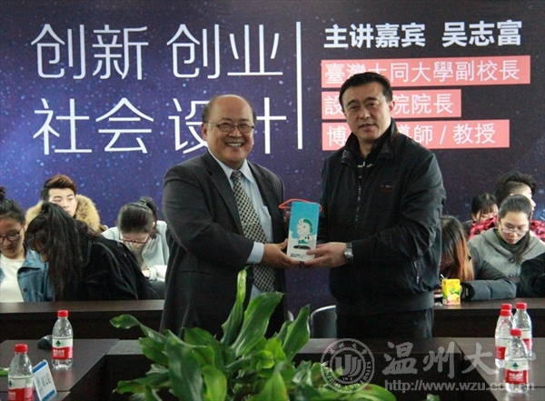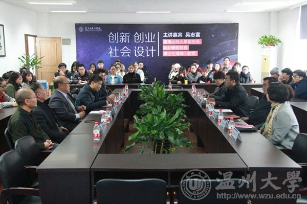 3月23日,以“创新、创业、社会设计”为主题的学术沙龙在beat365亚洲体育在线官网2B4001举行。台湾大同大学副校长吴志富教授应邀做主题演讲。beat365亚洲体育在线官网副校长薛伟,人文社科处副处长郑春生,瓯江学院院长杨彬,以及beat365亚洲体育在线官网班子成员等出席,全校对设计艺术感兴趣的师生共120余人参加了此次活动。beat365亚洲体育在线官网院长李运河主持本次学术活动。