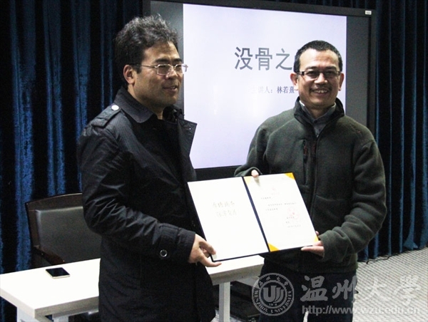讲座伊始,beat365亚洲体育在线官网李运河院长代表校方,向林若熹教授颁发了“beat365亚洲体育在线官网客座教授”聘书,并诚挚表达愿望,希望林教授能以己之力,带动地方高校的美术创作与科研能力,加强合作交流,保持长效的学术共享平台。