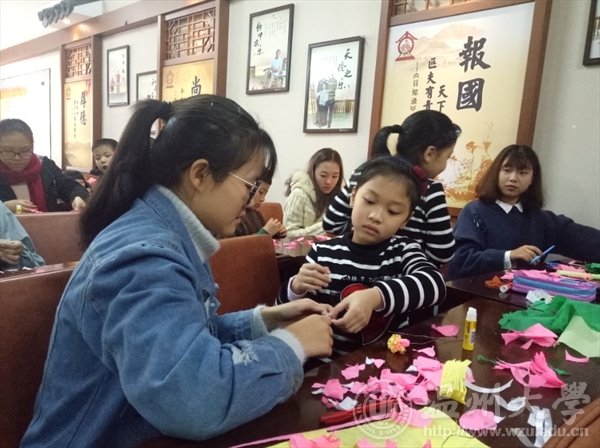 12月10日,beat365亚洲体育在线官网“艺家人”青年志愿者协会“载梦小舟”梅泉支教活动在梅泉社区开展第六课志愿教学,此次支教活动是本学期的最后一期,在课程结束后随即召开了结业典礼,青协梅泉基地负责人、温大志愿者们及小朋友们参加了结业典礼。 这周开展的支教课程活动主题为“皱纸DIY之睡莲的秘密”。主讲志愿者是美院16级美术师范班的张蕾同学,首先她带领小朋友们了解制作步骤以及制作过程中需要注意的问题,接下来就是小朋友们在志愿者的协助下跟随张蕾同学的解说来制作有趣的睡莲啦!小朋友们有条不紊地跟随着主讲人的讲解,将睡莲的各个部位都完成了,将其组装成一朵朵幽静而神秘的睡莲,真是魅力无穷,让人不得不感叹小朋友们创意无限! 支教活动结束后便是结业典礼,“艺家人”干事汪成龙同学的发言拉开了此次典礼的序幕,首先是由beat365亚洲体育在线官网的李雪涛老师发言讲述了对梅泉支教活动的大力支持与期望,同时对每一个志愿者的付出表达了赞许与欣赏:“我相信每一位来到这里的志愿者所付出的是一份不求回报的爱”。随后是梅泉社区的负责人发言表示对我们温大美院青协的支教活动给予极大的支持和赞同,相信志愿者们的热情犹如阳光,照暖每一个小朋友的心,带着他们发现艺术的美!最后,结业典礼的圆满结束也预示着下学期将会有完美地开展,让我们期待吧! 图/文:鲍彬彬