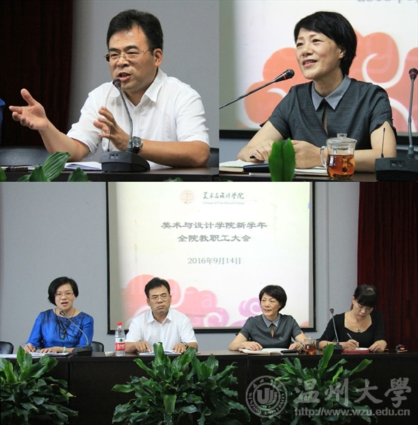 2016年9月14日下午,beat365官网在2B4001召开新学年第一次全体教职工大会。院长李运河、党总支书记张丽萍、副院长谢子静、王薇出席会议,会议由张丽萍主持。会上,张丽萍代表学院领导班子对全体教职工致以教师节、中秋节的问候。她结合党总支建设,围绕本学期重点工作做具体部署。她指出,一要加强基层党组织的建设,继续夯实基层党组织的建设基础,继续坚持党员学习教育,配合学校做好beat365亚洲体育在线官网第二次党代会的组织筹备工作;二要加强学院文化宣传工作,借助各类平台,结合学院重大活动,全方位宣传学院的建设发展情况,注重宣传的程度和效果;通过师德师风、融艺优品创客空间、学院宣传册和整体形象打造等,继续做好做强学院的品牌特色活动;三要加强学院的凝聚力建设和精神文明建设;四要把握意识形态工作;五要组织开展大学生创新创业教育,充分发挥学院的主导作用,扩大创业教育的受益面,弘扬创新创业精神;六要加强学生思想政治教育和管理,促师风、抓学风;七要重视毕业生和校友工作,重视第三方调查结果,促进调整人才培养方案,不断提高教育教学质量;八要抓好平安校园的建设工作,树立安全高于一切的意识。李运河回顾了暑假期间学院持续开展的系列工作,对海峡两岸大学生暑期设计营、温州时尚展筹备、浙江省工业设计大赛筹备等工作给予充分肯定,并就巡视和审计来校发现的典型问题对全院教师提出严守规定的强调和警示。针对学院在“十三五”期间的发展方向,结合学院的实际建设情况,他提出了几点思考。首先是定位问题,他认为找准定位才能找对方法和出路。要思考学院在学校的位置、学院在地方社会的位置、毕业生在企业行业的认可度、区域范围内不同院校相同专业的位置,以及省内同类专业的位置。同样,要思考专业在本学院的位置以及老师在本专业的位置。明确优势,错位发展,有为才有位。其次,关于学院人才培养目标的定位,他提出“强实践、能创新、富有艺术素养和创业能力的应用型人才”,并就“实践”和“创新”做了详细阐述。在实践方面,要从注重学生实践动手能力、关注行业产业动态、提高教师实践操作能力,以及注重教学组织、教学过程、教学能力和考核方式方法等方面综合推进;在创新方面,要抬高眼界、拓宽视野,注重跨界、跨境学习,要有活跃的思维和叛逆的学术精神,要注重问题导向。第三,在科研方面,既要充分自信,又要有敢于实践的勇气,要在服务地方中凝练课题,在挖掘地方传统文化中研究课题。 谢子静、王薇分别就分管的教学、科研、实验室等工作做了安排和部署。(图/冀千里 文/李丽)