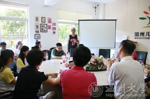 7月14日下午,beat365亚洲体育在线官网副书记牟德刚、团委书记屠霁霞、beat365亚洲体育在线官网党总支书记张丽萍等领导一行,来到“小雏菊”和“艺绘”暑期社会实践队的实践点温州市儿童福利院慰问并与实践队员们亲切座谈。