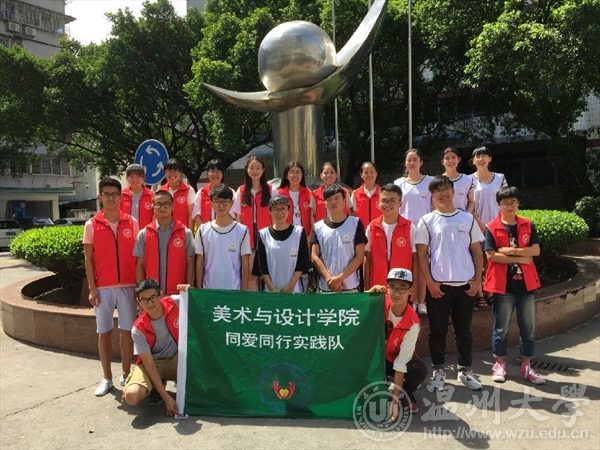 炎炎七月,beat365亚洲体育在线官网2016年大学生暑期社会实践活动也正在如火如荼的进行中。本次美院共有11支暑期社会实践队,其中重点队伍3支。暑期社会实践的开展,是给当代大学生们提供了一个接触社会,了解社会,培养社会责任感的机会。在为期20余天的暑期社会实践过程中,beat365官网11支队伍的同学们,充分发挥自己的专业特色,通过一系列手工、绘画、支教、墙绘、参观学习以及志愿服务等活动,不仅服务了社会,而且也开拓了视野,得到了专业上的锻炼。弘扬鞋履文化,品鉴千年鞋韵。鞋韵传承暑期社会实践队携手红蜻蜓鞋文化博物馆于南塘印象展开一场弘扬鞋履文化的艺术之旅。不仅给市民们展示了各式做工精美的鞋子,更是现在让市民体验3D量脚,真正做到学以致用,将课堂中学到的专业知识与实际应用接轨。赠人玫瑰,手有余香,同爱同行暑期社会实践实践队来到了温州医科大学附属第一医院开展帮扶患者志愿服务。主要志愿工作为服务台指引、自助机操作问询、秩序维护等岗位,集中于门诊楼及大厅。活动之初,面对患者和家属的诸多问题,队员们也曾不明所以、无从下手,从胆怯慌乱到指挥若定,在反复熟悉服务的过程中,大家越来越能体验到志愿服务的乐趣和满足感。“我们的工作虽然看似单一,但每一个病人的微笑就是我们最大的支撑。”队员黄雅慧如是说。品工匠精神,学艺术人生。“魅力工艺”暑期社会实践队午赴温大校史馆以及温州灯文化博物馆——藏灯阁参观学习。迎着温和的晨光,我们心怀敬畏地踏进了校史馆的大门。馆中器物、著作、照片、手仄稿、模型、雕塑、影像无不体现着旧时代温大的底蕴和现实活力。望古醒今,相信这个实践我们将会认真圆满的完成。我们将带着认真的态度去学习,去了解悠久的传统美术工艺。灯文化博物馆内古色古香,踏入其中,我们便不自觉放慢了步调。当我们来到阁外的书屋时,巧逢藏灯阁的主人青灯先生,奇妙的相遇给我们也带来了不一样的惊喜。交谈中青灯先生说道:制作工艺是一种态度,就像专心致志的做事总会带来不一样的收获。一小段旅途,一小段话语,使队员们对实践活动有了更深刻的认识,也深深感受到了此次活动的重大意义。 “清乐”暑期社会实践队乐清非物质文化了解并收集乐清地图绘制素材 畲族民族服饰调研并义务墙绘活动“小雏菊”暑期社会实践队福利院志愿服务“大手牵小手”暑期社会实践队关爱留守儿童调研支教活动“绘暖向南”暑期社会实践队支教墙绘活动“瓯绣”文化调研活动“艺绘”暑期社会实践儿童福利院志愿服务及温大井盖美化、地图绘制活动“艺韵晚霞”暑期社会实践队关爱老年人活动