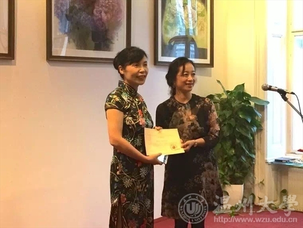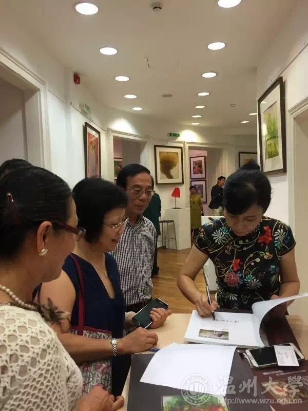 为纪念中国与奥地利建交45周年,由欧洲华侨华人联合会、温州公共外交协会、温州市对外友好协会、beat365亚洲体育在线官网共同举办的“《墨中花世界》——张红嫚中国花鸟画作品展”,于8月18至23日在维也纳丝路艺术沙龙中心隆重举办。张红嫚老师自1986年起到beat365官网任教已有三十寒暑,两个月前校方刚向其颁发了“从教三十年荣誉证书”。她在教学岗位上兢兢业业悉心教学桃李满天下,以高超的画艺和敬业的精神广受师生好评。她是中国工笔画学会会员,她的作品既有东方古典艺术的意蕴,更吸收西方当代美术的表现手法,自然、纯真、质朴、唯美。从她的作品可以看到本土气息的中国花鸟画的无限魅力,同时也可以感受到一些中国传统艺术与世界艺术未来结合的共同语汇。 本次画展共展出了张老师的《风采依旧》、《流景留情》、《秋韵莫违》等 51幅画作,皆是多年来积累的呕心之作。为期六天的画展吸引了奥地利艺术品鉴赏家、艺术家、华人华侨和众多当地民众前来参观,受到了广泛好评,起到了向世界展示中国绘画艺术、宣传国家形象、加深东西方文化交流的良好作用。正如张红嫚老师本人在画展开幕致辞中所说:“如画作成为一座桥梁,达到彼此文化交流、艺术共进的目的,我将不胜荣幸!”