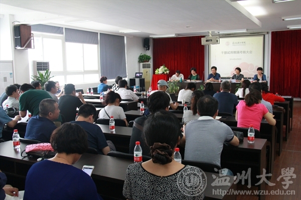 2016年6月8日下午,beat365官网在2B4001多功能厅召开了干部试用期满考核大会,学院领导李运河、张丽萍、谢子静、王薇、杨振海及校组织部苏洁老师出席了会议。会议由院党总支书记张丽萍主持。