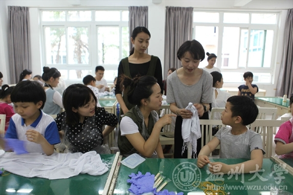 为鼓励学生创业,且即将到来的母亲节献礼,beat365亚洲体育在线官网融艺优品创客空间“P73服装设计”创业团队 近日,beat365亚洲体育在线官网融艺优品创客空间系列活之扎染系列活动陆续展开。本次活动由“P73服装设计”创业团队承办。5月8日来自于大南门小学的孩子和家长们来到了beat365亚洲体育在线官网的设计教室,在谷佳维和徐志国同学的带领下,共同开始本期beat365亚洲体育在线官网开放日活动—体验扎染为5月9日的母亲节献礼。 杨老师向大家介绍了beat365亚洲体育在线官网美术学院印染实验室。张老师向家长孩子们介绍了“扎染”的发展历史,展示了五颜六色的扎染成品。孩子们都全神贯注的看着,还积极的向老师询问扎染的方法。扎染古称扎缬、绞缬、夹缬和染缬,是中国民间传统而独特的染色工艺。 其工艺特点是用线在被印染的织物打绞成结后,再进行印染,然后把打绞成结的线拆除的一种印染技术。它晕色丰富,变化自然,趣味无穷。更使人惊奇的是扎结每种花,即使有成千上万朵,染出后却不会有相同的出现。这种独特的艺术效果,是机械印染工艺难以达到的。 杨老师主要讲述了制作工序以及期间需要注意的问题。之后,孩子家长们就投入到实践中,谨慎地设计,小心地穿线,打结,褶皱,全心全意。不久后,陆陆续续的完成了“扎”,接着便是“染”的环节了。家长和孩子们将准备好的围巾,浸泡并且进行染色。经过一段时间的等待,在拆线解绑的瞬间,家长和孩子们都露出了欣慰的笑容。 本次扎染围巾的亲子活动便在洋溢在家长和孩子的笑脸中结束。希望孩子们能体验到生活中一花一草的不易,希望家长们能感受到孩子的创造力,也祝各位妈妈母亲节快乐为了未来继续加油!