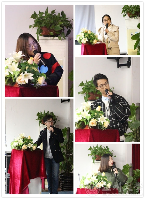 12月30日晚,beat365亚洲体育在线官网团委学生会2015-2016学年第一学期第四次全体成员大会在美院楼2B4001召开,参与此次全委会的人员有团委书记叶筱卉老师,团委指导老师商义铮老师,团委副书记孙彦鑫,学生会主席张昇,学生会副主席刘秀娜,学生会副主席周志豪,青协会长杨猛以及团委学生会全体成员。 会议第一项议程是“每月之星”的评选。转眼间,3个月前在这里面试并荣幸的成为了团学的一员,工作时还会手忙脚乱的青涩的干事们,现在已经可以自信地站在团学全体人员面前做工作总结了。干事们以十足的诚意准备的精彩演讲博得阵阵掌声。正如有个干事所说的那样:“你的人生永远不会辜负你,那些转错的弯,走错的路,留下的泪,滴下的汗水,全都会让你成为独一无二的自己。”相信经过团学的工作磨练后,干事们会更加优秀,成为更好地自己。 第二项议程是每个部长汇报本月工作,各部长诚恳陈述了工作的优缺点,也对工作做出了简要说明。 第三项议程是老师讲话。团委书记叶筱卉老师和团委指导老师商义铮对于“每月之星”的演讲表示非常欣喜。团委书记叶筱卉老师说,“每月之星”不仅展示了个人形象,也展示了部门风采。同时老师也建议干事们多谈自己的工作成长,和具体的点滴会更好展示个人的学习收获。同时,叶老师也分享了她的体会心得。叶老师说,比起成绩,成长更重要。我们现在获得的成绩是对我们付出的认可,希望同学们工作中得到锻炼,有所成长。在成长中,我们不能随波逐流,要做好自己的选择,并在现在和将来做好自己。看看自己今天做了什么,有什么可以引领自己,使成长在足够长的时间里得到积淀,再回过头给自己做一个成长鉴定。 最后,学生会主席张昇的讲话让同学们体会到身为团学一员每个人工作的重要,和必须的责任感。团委学生会在和谐的气氛中结束了,相信优秀的干事们可以在工作中得到更多磨砺,让美院团学更加精彩。图:设计宣传部文:设计宣传部