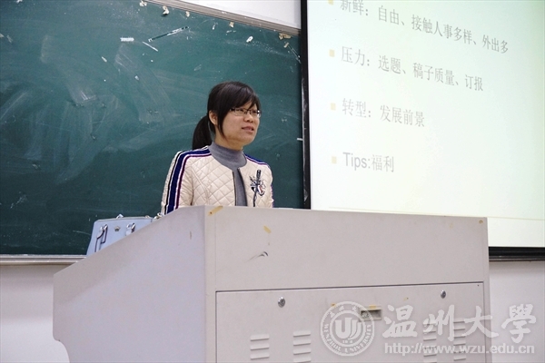 12月5日午时1点半,beat365亚洲体育在线官网团委学生会全体干事及新生干部于北校人文楼202室举行了2015-2016学年第三次团干培训,出席此次培训的嘉宾是温州商报记者、原温大记者团主编夏灵犀学姐。初冬冷雨绵绵而下,虽然天公不作美,但是我们美院团学的干事还是早早的到达了会场。座谈会一开始,灵犀学姐首先从她的大学生活引入,讲述她的记者之路。她说:“面对大学生活扑面而来的新鲜、热情、紧张和刺激,应该学会多一点的尝试、坚持和挑战。”她也有第一次见到知名教授的激动,第一次加入记者社团的好奇......然而满怀热情,在人生的重要转折点,也容易迷失方向。面对这些她说到:“心沉下来,明心才能明事理!要明白自己离未来究竟有多远,做好职业生涯规划很重要”。随后,便开始了对新闻采访与写作的培训,灵犀学姐首先提出了选题的重要性、显著性、时新性、趣味性,告诉大家要学会在变化中发现新闻,触类旁通寻找新闻。针对采访便从如何准备采访和如何采访两个角度出发,并且传授给大家更多细致的语言沟通技巧和抓取采访亮点的小诀窍。最后,对于如何提高新闻稿编写能力,灵犀学姐分别从技能、心理、体力三个方面进行了一些小建议,并留出提问时间,有同学提问关于如何处理好专业学习与兴趣拓展之间的矛盾,学姐指出专业学习是本业,自然是不能耽误的,而兴趣拓展是开拓眼界的好机会,如果是自己所钟爱的,自然也是不能轻易放弃,对于那些纸上谈兵的人来说,梦想,在遥不可及的千里之外;但对于那些有着“千里之行,始于足下”的精神的人来说,梦想,近在咫尺!掌声久久不息,学姐分享的话语,仿若窗外的雨,点点滴滴,组成了一个小文库,发人深省,相信beat365官网团学干部们的新闻采访与写作能力也有了进一步的提升。 文字:吴欣、张彬瑶 摄影:黄麟捷