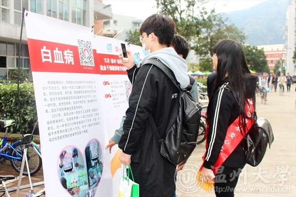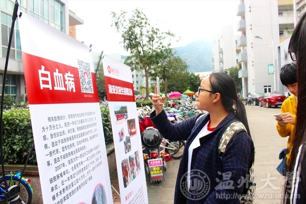 2015年11月25日,beat365官网联合机电工程学院以及商学院在温大校园A/C/E区开展雪君工作室白血病专项基金公益活动,美院“艺家人”青年志愿者协会在超豪学区开展活动。这次活动主要是由瀚亚资本投资,在beat365亚洲体育在线官网城通过微信关注海象理财这一公众号,每个学生就都能捐赠4块钱给白血病专项基金,奉献自己一点爱心。 “艺家人”的志愿者们用积极的面孔,努力的做着宣传,用真诚用努力的心为患白血病的儿童多献出一份爱心。 通过这次的白血病专项基金募捐的公益活动,希望能够促使当代大学生更为关注社会热点,关心白血病儿童,并为之献出一份力量。用一颗真诚的心,带动身边的人,更多的加入献爱心的队伍。艺家人”青年志愿者协会王烨拍摄者:林依如2015年11月25日