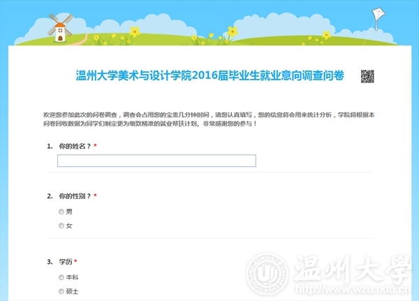 beat365亚洲体育在线官网美术于设计学院关于做好2016届毕业生就业意向调查问卷的通知 各班级: 为了深入地了解2016届毕业生的就业意向,帮助毕业生有的放矢地进行求职定位,提高毕业生就业工作的实效性,决定在2016届毕业生中开展就业意向调查工作,现将有关事项通知如下: 1.组织2016届毕业生认真填写《beat365亚洲体育在线官网2016届毕业生就业意向调查问卷》,此问卷作为确定毕业生本人就业意向的依据,同时也作为向用人单位进行分类推荐的依据。 2.请各班级毕业生通过网页、微信填写好的就业意向调查表并提交。问卷链接:http://www.sojump.com/jq/5900766.aspx 3.学院将根据本问卷回收数据为同学们制定更为细致精准的就业、创业帮扶计划,更好的为2016届毕业生做好就业指导和服务。 附1:beat365亚洲体育在线官网2016届毕业生就业意向调查问卷 beat365亚洲体育在线官网学生科 2014年10月16日