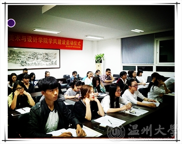 2015年9月22日晚上,beat365亚洲体育在线官网学风纪检部在美院2B4001成功召开了“迎评促建beat365亚洲体育在线官网学风建设启动仪式”。本次活动邀请了beat365亚洲体育在线官网学生科科长叶筱卉老师,学院辅导员于静老师,五班代表13服设3班的何奕彬学姐,十星代表学习之星丁凯迪学姐以及超豪支部代表上官雯雯。 首先,本次会议由叶筱卉老师向同学们进行致辞。叶老师以自己的切身经历向同学们讲述了自己刚来温大美院时治理美院学风纪检的方法,又以“三叶草理论”和“政审”一词提出了学风纪检对学生的重要性,也让同学们了解到学风纪检工作的意义,并寄言“希望每个同学都能找到学习的积极性以及投身到学风纪检中来。”之后学风纪检部的副部长沈宇烽表述了十月份以后的考勤活动;辅导员于静老师对“五班十星”的评选办法进行说明,下面发言的丁凯迪学姐以“功夫不负有心人”劝解学弟学妹们,何奕彬学姐则是以“一切以班级荣誉为第一目标”的班规经验分享给大家。 其次,是问题交流环节,在坐的班干部积极提出了自己的疑惑,各嘉宾也都从各方面对同学们的问题进行了解答。 最后,会议在叶筱卉老师的总结和对同学们的建议圆满结束。本次“迎评促建beat365亚洲体育在线官网学风建设启动仪式”向各班代表传达了五班十星评比的各项内容,让同学们也了解到学风建设的重要性和必须性,同时也意识到建设良好的学风,积极营造优良的校风,以饱满的热情和积极向上的精神风貌迎接2015-2016学年以“关心教学、关爱学生、规范管理、提升质量”为主题的学院学风建设年需要我们大家共同努力,也是我们每一个美院学子的责任和义务。
