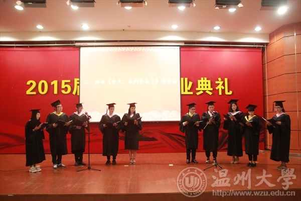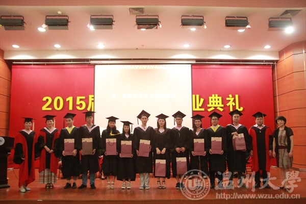 6月17日下午,beat365亚洲体育在线官网在岩松堂雁山厅隆重举行2015届本科生毕业典礼暨学位授予仪式。出席典礼仪式的领导有:beat365亚洲体育在线官网校长蔡袁强、beat365亚洲体育在线官网院长李运河、党总支书记张丽萍、副院长谢子静、副院长王薇、办公室主任李丽、学生科科长叶如芳,美术系主任陈伟、设计系主任朱广宇、服装系主任陈明艳、教授舒湘鄂、教授魏静、教授邓国祥、教授李勋祥、教授蔡瑞蓉、博士张晓剑。此外,全体毕业班班主任、教师代表、全体毕业班同学参加了本次典礼。学院党总支副书记杨振海主持典礼。 首先,进入第一篇章《只如初见 恍如昨日》,主要有电子相册的播放、微电影《献给毕业的你》、以及诗歌朗诵《今天,我们毕业了》等内容。追忆四年,一幕幕场景、一段段音符,串连成一部画面与音乐交织的大学电影,播放着曾经的快乐与忧伤,记录着同学们曾经的青春与过往,也见证着拥有的友谊与深情! 随即进入第二篇章《青葱年代 凤凰花开》部分,学院副院长谢子静宣读了校优和院优毕业作品获得者名单,学院党总支书记张丽萍宣读了省优和校优毕业生获得者名单,院长李运河、书记张丽萍、美术系主任陈伟、设计系主任朱广宇、服装系主任陈明艳、教授舒湘鄂、教授魏静、教授邓国祥、教授李勋祥、教授蔡瑞蓉、博士张晓剑一一为他们颁奖、合影留念以资鼓励。 紧接着典礼进入第三篇章《亦师亦友 常忆相思》部分,学院为全体毕业生赠送纪念品——由美院学生原未手工皮具工作室制作的卡包。 为了更好的与毕业生保持联系,学院特意设立了各班级的校友联络员,学院副院长王薇宣读了名单,院长李运河、书记张丽萍为每位校友联络员颁发聘书。 接着,由省优毕业生11美本师范班马俪净代表2015届毕业生发言,她回忆了在温大的学习与生活经历,并表达了毕业生们即将离开的不舍和即将高飞的壮志。精彩的发言引起了在场毕业生们的共鸣,赢得了阵阵的掌声。 至此进入第四篇章《寄语明天情深道远》,院长李运河为2015届全体毕业生致辞!他祝愿大家以正确的世界观、人生观、价值观来指导自己的选择。志存高远,增长知识,锤炼意志,让青春在时代进步中焕发出绚丽的光彩,未来的自己,一定会感激现在努力的自己。 接着在校的学弟学妹代表为全体毕业生献唱《温大青年之歌》。 最后,典礼进入高潮部分,由beat365亚洲体育在线官网校长蔡袁强为每位毕业生一一拨穗、颁发学位证书,并合影留念。这隆重的毕业典礼将成为每位学子心中最美好的回忆。祝福毕业生同学们明天更加辉煌灿烂!前程似锦!