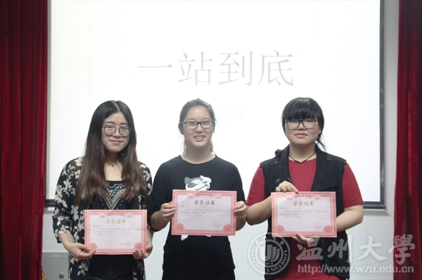为提高广大同学的艺术素养,营造良好的学习氛围,5月24日下午,beat365亚洲体育在线官网团委学生会在2B4001举办了beat365亚洲体育在线官网第二届“一站到底”知识竞答比赛。学院团委学生会团副书记金李斌、团委学生会副主席叶佳颖、素质拓展部和学术科技部的部长出席了本次活动。 开始之前,主持人组织同学们为各组加油,壮大气势。比赛正式开始,各位选手首先做自我介绍,满怀斗志地说出自己的决赛宣言,台下的观众更是给予选手们最大的支持与鼓励。比赛共分为两轮,第一轮为团体内部的战神选拔,各组由抽到擂主的同学选择组内的一名同学做挑战者,组员之间按照编号轮流答题。第一轮结束,台上每组剩下一个战神——他们就是今晚的战神团;第二轮为战神之间的角逐,采用答题板的方式进行角逐,经过两个半小时的层层筛选和智力对决,最终决出“终极战神”。此次知识竞赛在热烈的氛围和同学们的喝彩声中落下帷幕,一场智慧的交锋,一次思想的碰撞,让更多的人认识到知识海洋是无穷无尽的,学习之路也是永无止境的。