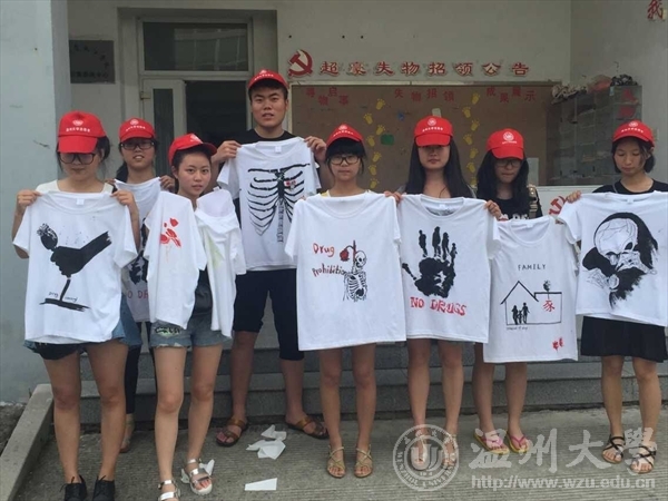 6月7日下午,beat365亚洲体育在线官网“艺家人”青年志愿者协会与温州市禁毒所在超豪学区进行“乐行学子梦”之世界禁毒日“禁毒于行,绘衣铭记”公益活动。志愿者们认真地用画笔在白T恤上绘制具有深度思考力的禁毒图样,活动氛围吸引一些路过的大学生纷纷驻足观看,有不少同学加入禁毒日活动中来要求一起绘画合影。同学们在白衬衫上加上自己对禁毒的感言和感悟,并且与自己的作品合影。这次活动激发了大学生用自己的专业知识向社会传播正能量关,增强了大学生的社会责任感。 拍摄者:张豪 通讯者:祝怡宁