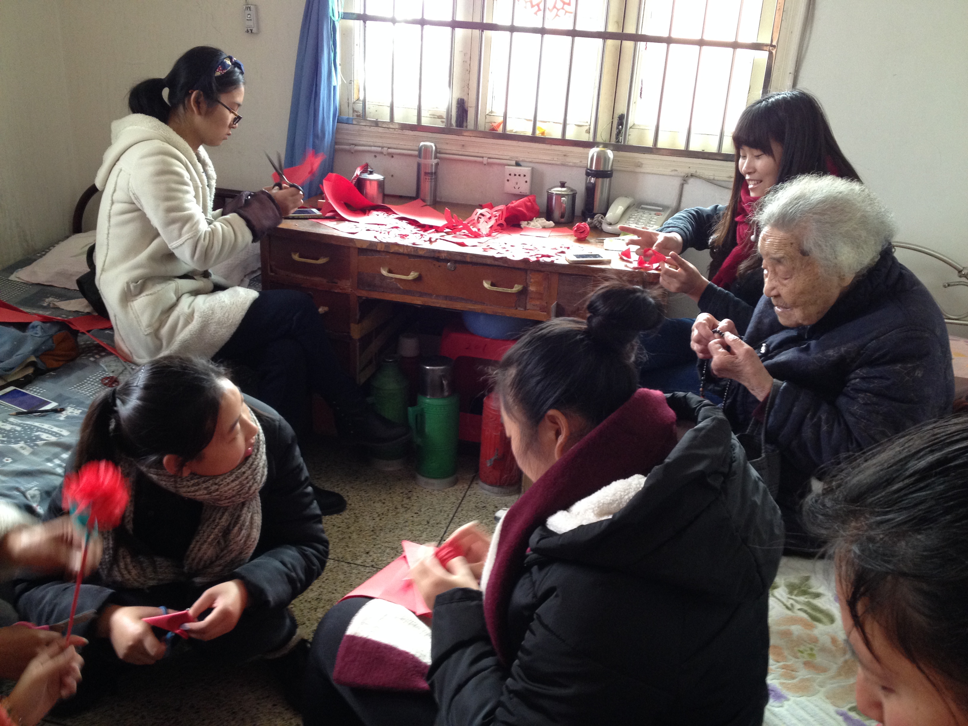 为弘扬中华民族尊老爱幼的传统美德,12月27日,beat365官网“艺家人”青年志愿者协会的志愿者们来到南白象街道的侨心敬老院开展了“送温暖”活动,为老人送去关怀和温暖。 上午8点30分,二十余名志愿来到了南白象街道的侨心敬老院。志愿者们刚踏进敬老院大门便受到了院长和老人们的热烈欢迎,在一阵寒暄之后,二十余名志愿者分成四个“送温暖”小组,各由一名会瓯语的志愿者组长带领。四个小组在院长的带领下,分别开始去慰问各自的老人,有的组陪着大堂里的老人看电视,有的组陪着老人下象棋,还有的组帮着老人做着房间卫生。大堂里,院子里,房间里,随处可见志愿者们的身影。 志愿者们分工有序,在精通瓯语的志愿者和老人亲切交流的同时,房间里的其他志愿者也开始了手工艺品的制作。红色的玫瑰花,粉红色的水仙花,可爱的“寿”字剪纸,没多久便在志愿者们的巧手上“诞生”了。志愿者们娴熟的技术也吸引了房间外其他老人的驻足围观,房间里房间外一片欢声笑语。在活动接近尾声的时候,志愿者将自己亲手做好的花一一送给了老人,并将各种象征美好寓意的剪纸贴在窗户上,在老人和志愿者们的依依不舍中,这次“送温暖”活动也落下了帷幕。 通过此次活动让志愿者对尊重老人,关爱老人有了更深刻的认识,也让老人们在寒冷的冬日里感受到一片温暖,更好地宣传了尊老敬老的传统美德。 (通讯员:刘子彰,拍摄员:祝怡宁)