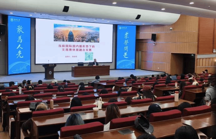 结合beat365亚洲体育在线官网的专业特色,张志宏巡视员将理论与实践紧密结合,以浙BA文旅融合项目、“六个温州”文旅品牌打造等典型案例为切入点,深入分析了文商教体旅融合发展的新趋势、新路径,为学院专业建设、师生职业发展提供了方向指引。