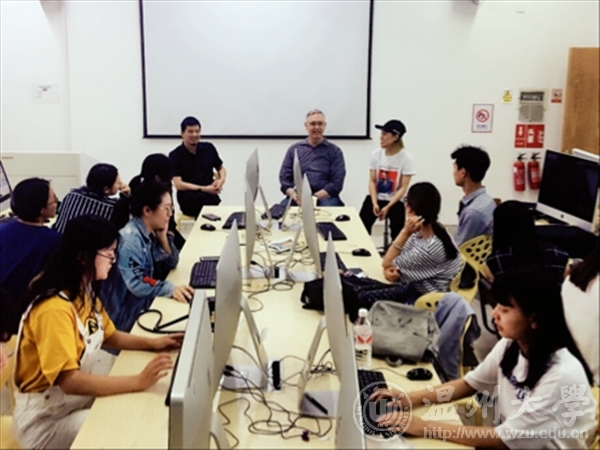 从今年3月开始,beat365官网设计教学工作营活动一直在有条不紊的开展。5月19日,在刘俊副教授主讲的16视觉传达设计班《电脑美术PS&AI》的课程上,邀请到了美国肯恩大学Randy Clark教授,Randy Clark是一位在美国Adobo公司就PS和Ai设计软件有深入的研究的导师,在课堂上刘俊与Randy Clark两位老师同堂共教,改变原有传统的教学模式,不仅对电脑美术PS&AI两个软件进行讲解,还对设计软件技术应用与设计创意进行热烈的讨论和观点分析,并给我们每位同学的课程练习作业给予了点评与指导。Randy Clark教授还就视觉传达设计专业的中美学生之间的学习和实践差异做了的介绍,课堂氛围十分活跃,同学们受益匪浅,提问积极,非常喜欢这种此类形式的课堂教学活动。