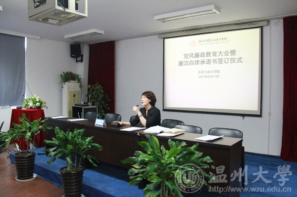 她向与会党员和广大教职工提出了三点希望:一是提高反腐倡廉的思想认识,严肃财经纪律,增强廉洁自律的自觉性,预防违纪违规案件的发生。二是继续推进“两学一做”,推进《准则》《条例》在每位党员心中落地生根,并付诸实际行动。三是严格落实中央八项规定,标本兼治,积极营造风清气正的学院廉政风范;四是要强化责任担当,尤其领导班子要做党风廉政建设的排头兵和主要责任人。她希望通过本次大会的警示教育作用,使广大党员教师引以为戒,进一步严明政治纪律和政治规矩,净化教书育人环境,推进学院的党风廉政建设工作取得实效。