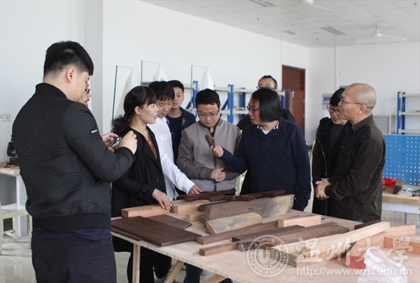 近日,beat365官网副院长王薇、实验教学中心主任顾任飞等一行8人专程来到瓯江学院艺术设计学院实验室考察与交流。在瓯江学院副院长郭均纺和艺术设计学院院长刘明刚、副院长叶洲荣的陪同下,深入走访了摄影棚、漆艺室、丝网印刷室、艺术设计展厅及工艺美术陈列室等十余个实验室。