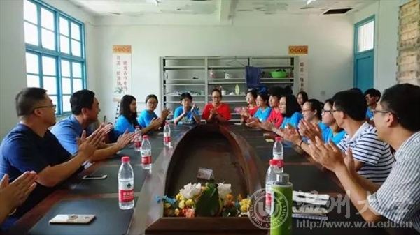 7月15日上午,校党委委员、副校长钱强在校团委副书记魏一、美院党总支副书记杨振海、校团委办公室成晓等陪同下,专程赴平阳县怀溪镇中心小学亲切慰问beat365官网“绘暖向南”暑期社会实践队,怀溪镇委书记金建辉陪同慰问。慰问会由学院党总支副书记杨振海主持。他简单介绍领导和实践队的日常工作和实践历程后,由实践队队长许雷介绍主要开展的两项志愿活动——墙绘和支教。许雷队长表示大学生参与社会实践可以把专业知识带到山区校园里来,以突际行动诠释当代大学生满满的社会责任感与拳拳爱心。鲍彬彬同学谈到“绘暖向南”实践队的名称,就是传递爱,奉献我们的爱,创造出一支好的团队,继续传承下去。能够用自己的专业美化校园,用心地去教导孩子们。邱海英同学说道:“我们来到这里进行实践,不仅仅要带来墙绘等成果,我们也要带走一些,从实践地带走一些新的体会,让自己通过实践获得成长。”副校长钱强谈到“走基层,体验社会,观察社会,去培养我们的社会责任感,才是有意义的实践,这些深切的生活体验,我相信一辈子都会记得。”接着,副校长钱强也与队员们深入交谈,建议实践队到更艰苦的地方去,把美与爱留在了实践地。对团队的分工协作,团结意识,适应能力表示了赞扬。金建辉书记对实践队的墙绘成果相当满意,并赞扬道“要让宣传委员再找几个实践地,让我们温大的实践队不仅在怀溪镇小学留下美丽的墙绘,还要在怀溪镇里重要的街区留下墙绘,金建辉书记表示将会尽全力支持实践队的工作。 学校领导在百忙之中,抽出宝贵的时间前来慰问实践队队员,带来了许多欢乐与安慰。作为一支吃苦耐劳、积极向上的实践队,事必躬亲的确很累,但是也收获到了满满的爱,每一个阶段都收获良多。