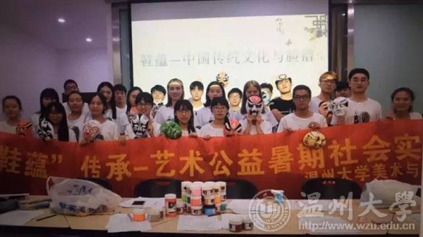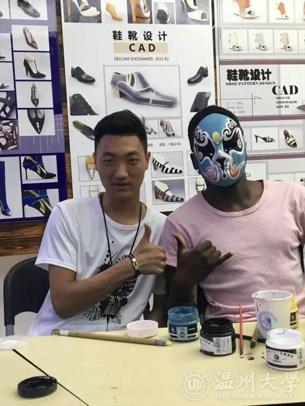 2017年7月8日,为了让更多的外国友人了解中国文化,“鞋蕴”暑期实践队邀请外国友人前来鞋靴实训中心104,参加“鞋蕴——中国传统文化”活动。中华文化博大精深源远流长,大家齐聚一堂以口交流以手实践,思维的碰撞中中华文化得以弘扬。 两位同学讲解中国的传统文化和京剧的历史传播,翻译官为外国友人翻译。外国友人听得津津乐道,受益匪浅,尤其对京剧脸谱方面特别感兴趣。 实践队全体成员与外国交流生共同绘制中国传统脸谱。脸谱极具有华夏民族特色,如红色象征忠义,不同类型的人物会有不同的谱式。 先用铅笔描绘整体的图案,结束后便是上色啦。五颜六色的颜料在空白的面具上闪闪发光,有些人大笔一挥初步轮廓便出来,有些人精工细琢一些细节。 每个人都选择了自己喜欢的脸谱图案,在纯白面具上仔细涂抹,时而蹙眉时而微笑,时而换个角度端详作品。 不一会儿,一个个精巧的脸谱便出来了。有红色脸的吴汉、关羽,有黑色脸的张飞、李逵,有白色脸曹操、严嵩,有黄色脸的典韦,有蓝色脸马武、窦尔墩,有紫色脸的徐延昭等等。 不只是脸谱,“鞋蕴”实践队美术专业的队员在绘制脸谱后绘制了书签,墨色的竹风雅至极。 亲手绘画脸谱更能体会到中国传统文化的韵味,过程中外国友人与队员们也多有交流,气氛十分融洽。在这次的活动中,我们收获的不仅仅只是对文化的了解,更加收获了一份珍贵的友谊。