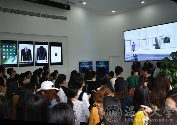 在参观学习环节,报喜鸟集团周永温书记带领服装支部党员一行参观了最新的智能操作系统。在智能导读的介绍下,支部一行开始了对报喜鸟品牌在最新专业领域中的了解和学习,报喜鸟集团的云数据平台构建了服装行业大批量个性化定制生产的产业链,以及其全渠道战情室和高级定制部分的手工完善整体服务系统。与会党员亲眼目睹了该集团展示的新一轮全球工业革命蓝图。