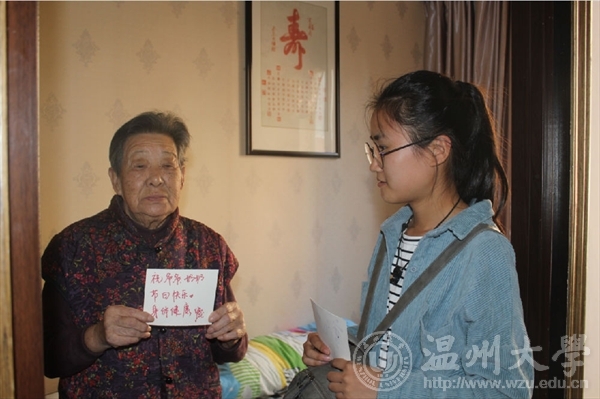 2017年10月28日,温大beat365亚洲体育在线官网“艺家人”青年志愿者协会于上午8点30分在E区门口集合,前往名盛敬老院开展重阳节关爱老人志愿服务活动。本次活动在欢声笑语中拉开序幕,志愿者为老人们表演了精心准备的节目,让敬老院的气氛一下子欢快了起来,精彩的演出赢得了老人们的掌声和称赞,现场其乐融融,老人们在台下也开始愉快地哼起了小曲。一个个精彩的表演过后,老人们也渐渐熟悉了志愿者,开始拉着志愿者们在院子里散步谈心,说年轻时的自己,说他们爱的家人,说他们所认识的人生,也许没有多少传奇的故事,但他们的体会,让志愿者们对人生有了新的认识,志愿者们也向老人们分享校园趣事,引得老人们哈哈大笑。有一些腿脚不便的老人,志愿者们则推着轮椅,停停看看,惬意自在。为了让老人们生活地更舒服些,志愿者们走进了老人们的房间,帮助他们清扫房间,甚至有些狭小角落也被志愿者们打扫地干干净净,一点一滴的行动证明着我们志愿者的爱心。在这温馨的午后,志愿者们又给老人们送上了为他们做的重阳节明信片,美好的时间过的格外地快,志愿者们依依不舍地与老人们分别,结束了本次的实践活动。本次活动开展的目的在于给敬老院的老人们带来像家人一样的温暖和陪伴,即便这些老人不常在节日里与家人们团聚,但相信志愿者们给出的关怀与问候也能让这个温暖的节日更加温暖,同时也希望借此来呼吁同学们能多关爱老年人这一群体,多给予他们关心和照顾。想对那些老人说:我们会经常来这里看你们,和您手说生活中的琐碎,让您回忆起儿时的趣事;我们将会是视你们为至亲的亲人。让我们期待下一个的志愿活动,把更多的温暖传递出去! 图/文:罗会慧董 悦金 哲