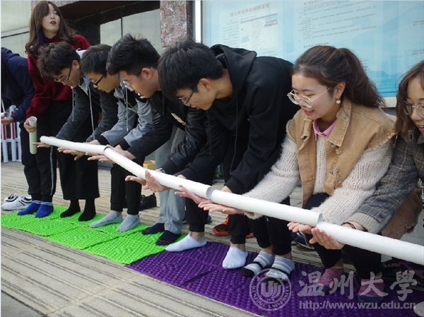 第一个项目是兔子舞同学们整齐的排成一个圈,接受重重挑战。这个项目不仅挑战了同学们的协调性也考验了大家的反应能力。在活动中反应不够灵敏的同学接受惩罚时也引起了同学的爆笑。