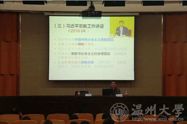 12月13日下午,beat365亚洲体育在线官网在雁山厅开展本学期第二次形势与政策课,beat365亚洲体育在线官网马克思主义学院党总支书记王柏民作题为“马克思主义宗教观解读”的形势与政策讲座,beat365亚洲体育在线官网17级全体同学参加讲座,讲座由美院党总支副书记杨振海主持。 王柏民书记从马克思主义宗教观的哲学基础、基本内容、中国化三个方面进行解读。王书记指出,21世纪宗教发展趋势呈现四个特点,一是全球信教人口比例快速下降;二是极大主流宗教的信徒人数持续增长;三是宗教的国际化格局持续变化;四是宗教的国际影响持续变化。他还指出,我国信教比例相对较低,但整体趋势上呈现“宗教过热”的现象,具体表现为宗教渗透、分裂活动、违法活动以及宗教矛盾。 随后王柏民书记对马克思主义宗教观做详细阐述:按照唯物史观,宗教是思想上层建筑中的一个组成部分,宗教有其存在的经济基础。马克思、恩格斯认为:宗教是颠倒了的世界观,一切宗教都不过是支配着人们日常生活的外部力量在人们头脑中的幻想的反映,在这种反映中,人间的力量采取了超人间的力量的形式。关于宗教的根源和宗教的消亡,马克思在《资本论》中说“……只有当实际日常生活的关系,在人们面前表现为人与人和人与自然之间极明白而合理的关系的时候,现实世界的宗教反映才会消失,……这些条件本身又是长期的、痛苦的历史发展的自然产物”,恩格斯在《反杜林论》中也提到“取缔手段是巩固不良信念的最好手段”。因此对于宗教要避免两种倾向:一是将宗教与社会主义、共产主义混为一谈;二是以行政命令消灭宗教。 如何处理宗教问题?王柏民书记提到,2016年4月习近平总书记关于工作的讲话提出:坚持和发展中国特色社会主义宗教理论,实施宗教信仰自由政策,积极引导宗教与社会主义社会相适应,构建积极健康的宗教关系。十九大报告中指出,要全面贯彻党的宗教工作基本方针,坚持我国宗教中国化方向,积极引导宗教与社会主义社会相适应。党的宗教工作基本方针即“四句话”:全面贯彻党的宗教信仰自由政策、依法管理宗教事务、坚持独立自主自办原则、积极引导宗教与社会主义社会相适应。 最后,王柏民书记总结道:“宗教是社会文化现象,是对现实世界的虚幻反映,我国在政策方面尊重信仰自由,引导宗教与社会主义社会相适应,构建积极健康的宗教关系,推进宗教工作法制化;作为有理想有信念的大学生,特别是共产党人、共青团员要做坚定的无神论者,决不能在宗教中寻找自己的价值和信念。”
