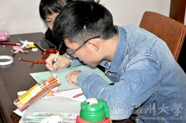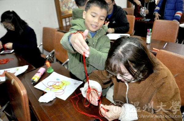 2017年12月9日,beat365亚洲体育在线官网“艺家人”青年志愿者协会成员以及志愿者们准时来到了梅泉社区文化礼堂,进行了主题为“春节”的志愿活动。秦佳敏同学向小孩子们提问问题“春节有哪些习俗呢?”有的孩子说放鞭炮、贴对联、画福字,收红包……没错,还有挂中国结。中国结的编制没有那么简单,尽管步骤告诉大家,但一开始志愿者们和孩子们都连连“诉苦”难度太大,但不过一会儿还是有心灵手巧的志愿者学会了,并且还教别的志愿者打结,虽然中国结做的不太完美但代表着团结幸福平安的意义却丝毫没有减少。明年是狗年,当然少不了教孩子们画可爱的狗狗,孩子们为自己画的狗狗涂上了颜色还为它画了一个小房子。最后是写祝福语的环节,孩子们依旧很用心地给自己的爸爸妈妈写上祝福,有的写的是“爸爸妈妈你们辛苦了”,有的是“我爱你们”……字里行间流露出了对爸爸妈妈浓浓的爱意。