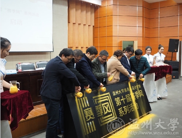 在仪式的最后环节,与会领导们共同洒下金沙,“beat365亚洲体育在线官网美术与设计学院赛季风系列活动”缓缓浮现,开启了美院第十届“赛季风”系列活动的序幕。