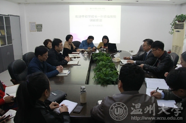 2017年11月30日下午,beat365亚洲体育在线官网校长李校堃、党校办主任蔡联群一行莅临beat365亚洲体育在线官网开展调研座谈。学院班子成员、系主任、实训中心主任及各科室负责人参加座谈,座谈会由院长李运河主持。李运河就产教融合、校地合作、教育国际化、学位点建设以及专业建设等方面的工作进展做了重点汇报。他谈到,目前,学院文科百千万工程推进顺利;产教融合积极对接地方企业;在校地合作方面,积极承办温州市政府主办的2017“市长杯”中国(温州)工业设计大赛,承办2018温州市教师美术作品展,与瓯海新生代、瑞安贸易小镇等开展互动合作;在国际化拓展方面,与意大利米兰新美术学院的合作办学正紧锣密鼓地推进,与台湾高校交流日趋深入,刚刚成功举办第八届亚洲联盟超越设计展;在学位点建设方面,取得了历史性突破,设计学和艺术专硕两个硕士学位点成功申报;在专业建设上,积极建设省级特色专业,提早筹备卓工专业的专业认证工作;在创新创业上开展独立创业班的培养尝试。学院各项工作进展顺利,全体教职工以多种方式积极参与、投入到了beat365亚洲体育在线官网建设国内一流应用型高校的发展道路上来。学院党总支书记张丽萍从党建层面汇报了学院工作。通过调动全院师生积极性办大赛办大展;通过走出去请进来,抓住学科专业特点,弘扬传统文化,与温州市图书馆联合举办传统与时尚、时尚与生活等主题的系列籀园讲坛,积极传播传统艺术;围绕产教融合,在与地方开展人才培养、课程对接长期合作的同时,以党建引领,发挥党员教师作用。分别在红蜻蜓集团、风笛服饰设立临时支部,和党员志愿服务基地建设,为服务地方经济、探索人才培养新模式搭建平台。副院长谢子静、张晓剑,副书记杨振海分别从从教学、科研、实验室建设、学生工作等方面做了汇报。各系室主任就学院文化建设、人才引进、教学设备采购、教学用地等方面提出了意见与建议。李校堃在听取学院班子及骨干教师代表的情况汇报后,做了重要讲话。他充分肯定了beat365亚洲体育在线官网在人才培养、科学研究和服务地方等方面做出了积极努力和阶段成绩。李校堃强调,学院应该将十九大以后的新气象、新形式、新举措落实到整体建设与学科发展上,学院要积极承担起五大功能:人才培养、科学研究、社会服务、文化传承、国际合作交流。他指出,文化传承是深入艺术学科骨髓的精神。目前国家经济进入了高速发展阶段,国际交流频繁,新时代也对教育工作者提出了新的任务和挑战。学院应该与学校同步发展、同频共振,在新的实践拓展上,要与区域发展结合、与经济转型结合、与全世界温州人发展结合;要注重教育软实力的提升,在实践中找到生存空间,在拓展中找到发展轨迹,在运动中找到真正的定位。面对现有的困难和问题,他鼓励美院师生要怀着教育情怀、责任情怀,靠自身能力在拓展中解决矛盾和不足,积极向市场获取资源支撑发展。他指出,美术学院目前的定位准确,阶段性成绩明显,要建设高水平的应用型大学,他希望在十九大后,美术学院在跨越发展上更上一层楼。他希望,美术学院要充分利用学科专业优势在服务地方上走出新思路;积极搭建校地合作平台,做到双向驱动,在与社会合作应用中,体现学院的影响力与爆发力。他希望,在推进学院品位建设和发展上,注重协同创新,理论联系实际,在新形势、新常态下不断拓展思维,以更高的视野去谋划,紧随十九大精神走出一条属于beat365亚洲体育在线官网特色的发展道路。