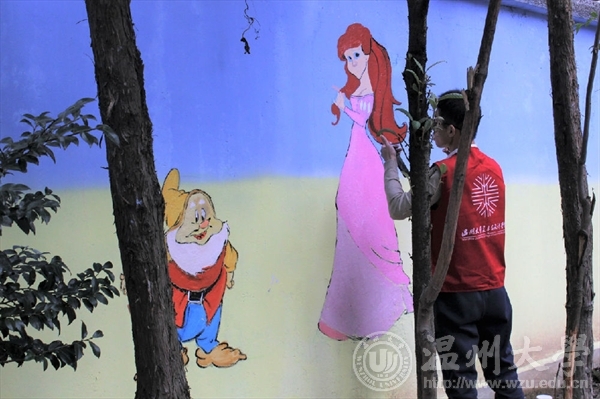 2017年11月19日,beat365亚洲体育在线官网“艺家人”青年志愿者协会再一次来到了白门公交站对面的侨星幼儿园开展了主题墙绘活动。活动开展前,志愿者们都按照规定时间提前到达高教园区始发站集合,再由负责人带领大家前往活动地点,经过等车、转车大概五十分钟左右终于到达了终点。抵达后,园长带领负责人和志愿者们先看了绘画场地,以便大家充分了解所画场地面积方便作画。随后回到幼儿园吃午饭,吃完饭后稍事歇息便开始了工作,在安排好要绘画的墙面和人员分工后,大家迅速的进入状态纷纷开始着手画起来。定位置、勾大轮廓线条、精修定稿、细致调色以及上颜色,每个人都有条不紊地摆动着手中的画笔,每一组都分工明确,井井有条,每一组在绘画中都严捉细节,同时充满热情。时间过得很快,眼看着活动快要结束了,志愿者们赶紧把最后的小细节进行再一次的修正,不一会儿,一幅幅形象生动、色彩绚丽、形式新颖的画面呈现在了大家的眼前,作品也得到了幼儿园老师们的赞赏。因为活动开展前此活动的负责人几次联系幼儿园园长做了充足的活动前期准备工作,所以避免了很多不必要的麻烦,活动开展的很顺利。本次活动是大学生参与社会实践服务社会的一种良好的途径,不仅服务了他人,同时也能够增强自己对公益的意识,提高个人素养,久而久之,相互影响,便会使整个社会都充满了爱。从自己做起,从小事做起,做力所能及的事,帮助需要帮助的人,一个人的力量虽小,但大家的力量是无穷的,作为志愿者的我们,应该做到聚是一团火,散是满天星,相信只要眼中有爱心中有爱,世界便会充满爱!图/文:王 伟李思潼