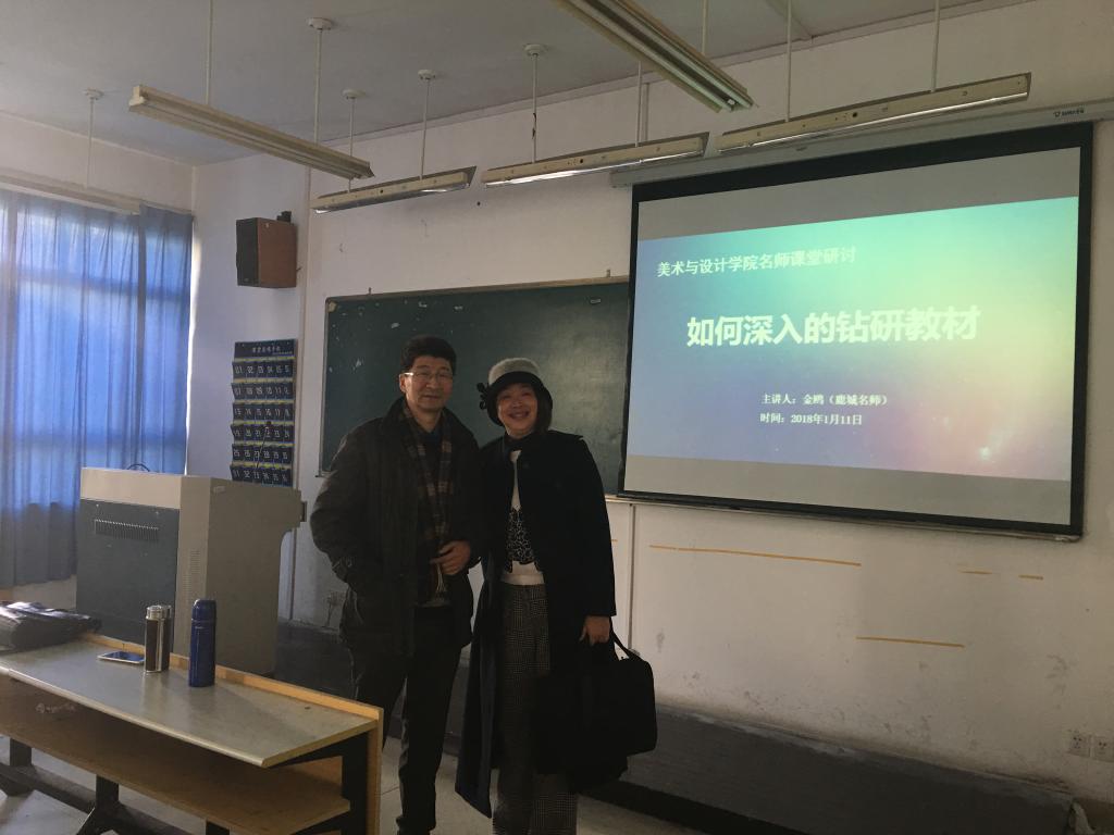 2018 年1 月11 日上午8:30在beat365亚洲体育在线官网3B204教室,温州市鹿城区名师金鸥老师为beat365亚洲体育在线官网的师范生和研究生作了以“如何深入的钻研教材”为主题的课堂研讨。beat365亚洲体育在线官网胡建南老师主持了活动。 本次研讨给同学们带来极大震撼,使同学们认识到深入的钻研教材的重要性。首先,金瓯老师围绕如何深入的钻研教材,通过引案例、与同学间的互动、点评并结合自身经历为同学们分析了上好一节美术课的前提,用幽默风趣的语言向同学们提出了相应的的解决方法,提出了备课前三步走的工作思路和具体的备课过程。整个教室不时发出清脆动听的笑声,同学们在轻松的氛围中认识到深入钻研教材的重要性。她还对同学们提出了深入钻研教材备课的建议,对同学们寄予了殷切的期望,同学们以热烈的掌声欢送金鸥老师离场。 最后,胡建南老师做了总结性发言,本次活动取得圆满成功。