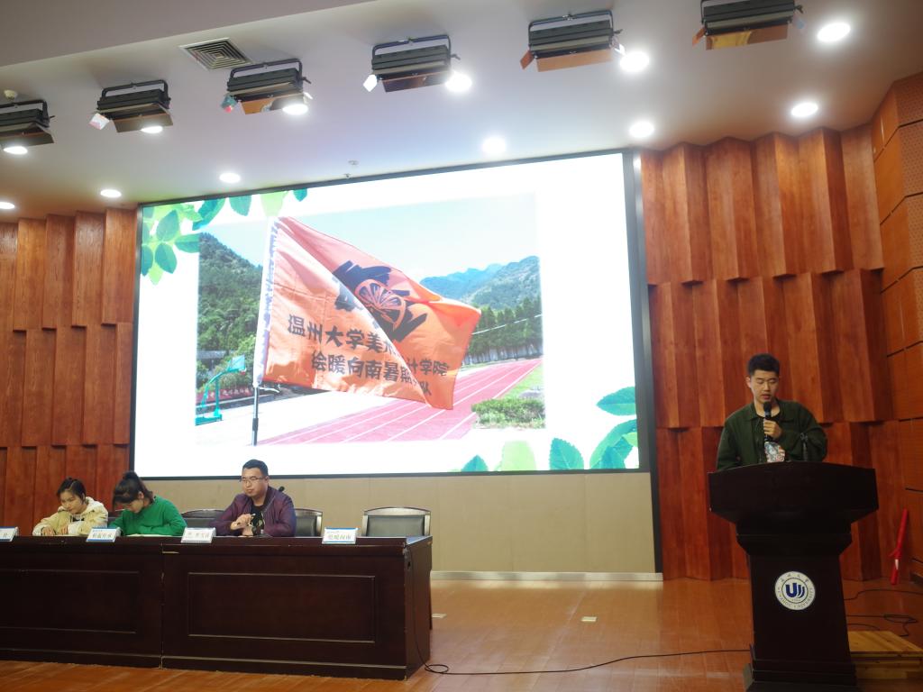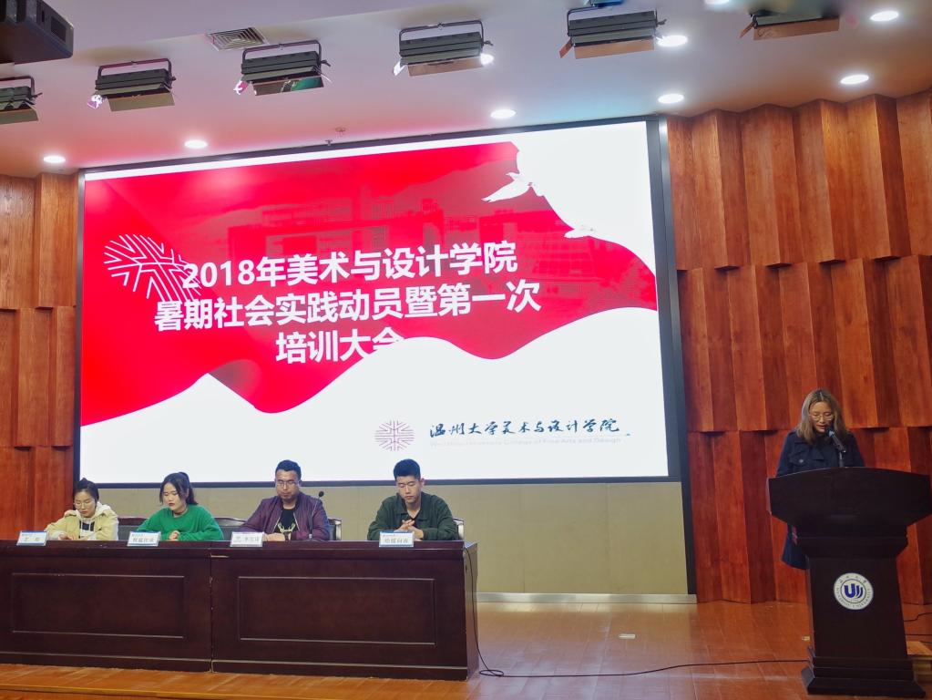 3月25日晚,beat365亚洲体育在线官网暑期社会实践动员暨第一次培训大会于雁山厅举行,本次大会由美院团委学生会学术实践部主办,美院2017年优秀实践队长以及团学指导老师李雪涛出席了此次大会,参与本次动员会的成员还有大一全体同学。 此次大会共分为了四项议程,首先是观看2017年暑期社会实践成果视频,视频较为全面的介绍了beat365亚洲体育在线官网各个学院、学区的实践队情况,接着由学术实践部代表付秋圆同学为大家介绍了暑期社会实践具体流程及实践重要性。接着,17年优秀实践队队长分享他们的收获与感受,“绘暖向南”实践队队长许雷学长用他幽默风趣的演讲带起了会议的气氛,他鼓励大家通过优质的暑期社会实践,用自己的能力提升自身价值;然后是“艺绘”实践队队长邹琴学姐从她提炼的四个词切入,“创业”、“成熟”、“减肥”、“脱单”,她用这四个词概括自己在实践中的收获,鼓励大家积极参与其中,同时也鼓励大家可以勇于创新,积极创建全新的实践队,她也愿意在策划方面帮助大家,最后是“鞋蕴传承”实践队队长陈晨学姐,她鼓励大家实践与专业相结合,通过实践看到自身专业发展的方向。三位队长通过各自各具特色的展示,并结合自身经历,让大一同学们对社会实践有了一个初步的认识。大会最后李雪涛老师进行了讲话,结合新时期对当代大学生的要求,阐述了实践的重要性及其意义与目的。 此次暑期社会实践大会在很轻松愉悦的氛围中度过。通过这次大会各学生能够更清楚的了解暑期社会实践的基本情况,相信通过这次大会的召开,各学生能积极认真负责的参加暑期社会实践活动。