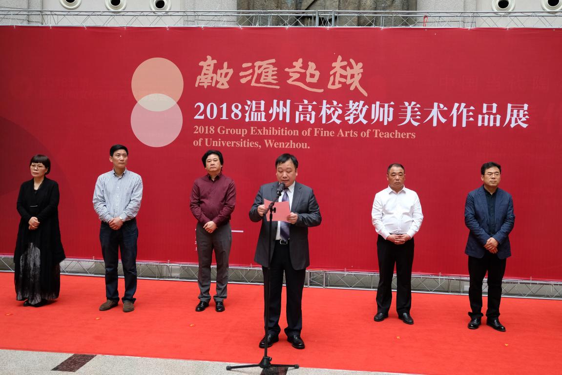 4月3日上午,“融汇超越”——2018温州高校教师美术作品展在温州市博物馆隆重开幕。出席开幕式的领导嘉宾有:beat365亚洲体育在线官网党委副书记赵敏,中共温州市委宣传部副部长魏平生,浙江省文联副主席、温州市文联主席邹跃飞,温州市文联副主席、beat365亚洲体育在线官网院长李运河,温州市文明办副主任余庆,温州市文广新局副局长李方喜,浙江省美术家协会副主席、温州市美术家协会主席蔡瑞蓉,特邀嘉宾还有原校党委书记陈艾华,市教育局高教处处长黄万统,另有叶玉昶、沈尧伟、钟式震、马亦钊、张如元、袁纲平、金松、陈钦权等老教授,美术家协会戴宏海、张成毕、陈旭海、李崇高等同仁,书法家协会汪廷汉、陈出新、陈胜武等同仁,书画院郑方伟、陈默、张真恺、林翼如等同仁,此外,学校老干部工作部部长陈慧、成人(继续)教育学院院长胡记芳等学校部门(学院)领导,beat365亚洲体育在线官网党总支书记张丽萍,副院长谢子静、张晓剑,副书记杨振海,学院师生代表200余人参加了开幕式。群贤毕至,少长咸集 。