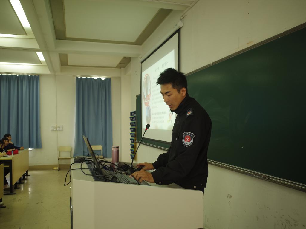 此次讲座共有三项议程,首先是观看由消防知识案例小视频,视频中主人公因错误的逃生方法,极差的防火意识而遇难,让大家都深深地感受到了消防防范的重要性。第二项议程,俞教官针对学生消防安全隐患讲了六个方面内容:第一针对保卫处讲解了单位落实消防安全责任制,强调要落实到具体责任人。第二,要识消防,懂火灾,能处置,掌握正确的逃生方法。第三,是智慧消防。要学会使用防毒面具和灭火毯等消防器材。第四是隐患排查,要定期检查灭火器是否能正常使用。第五,要掌握在公共场合如公交车内正确使用安全锤的逃生方法。第五,是要时刻谨记居安思危,警钟长鸣,防患未然,不断让自己消防意识提高。经过俞教官的全面严谨的讲解后,同学们都对消防知识有了更加深刻的了解。最后是讲座第三项议程,由俞教官带领的消防演练,在演练中同学们积极参加并且得到了教官正确指导,都能够正确规范地使用消防工具。