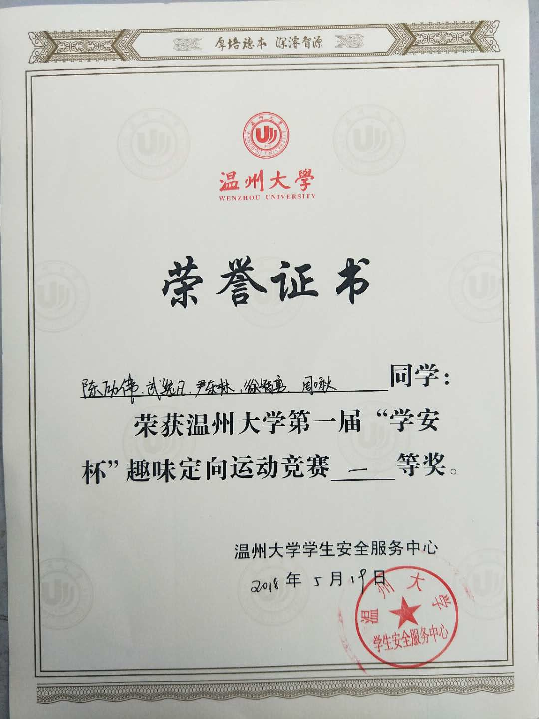 5月19日beat365亚洲体育在线官网第一届“学安杯”趣味定向运动竞赛在大学生活动中心顺利落下帷幕。在当天下午学安杯的颁奖典礼上,beat365官网参赛学生代表陈励伟、武逸凡等六名同学成功拿下一等奖的宝座。 此次学安杯由beat365亚洲体育在线官网保卫处承办,当天的参赛队伍全都是各个学院的精英代表。比赛是以定向运动的形式开展。随着裁判员秒表计时声的响起,各参赛队伍都快速前往任务地点,beat365官网同学在队长武逸凡的带领下,按照规则制定了详细的“作战计划”,率先攻破了人文楼任务点,获得了比赛的主动权。随后beat365官网选手依次攻破了外语楼,教师教育学院,beat365亚洲体育在线官网这3个任务点。通过巧妙的配合与智慧完成寻找消防栓、垫乒乓球、嘴型别物以及踩趾甲板这四大通关游戏后,马不停蹄的赶往终点,尽管beat365官网一位参赛队员因运动量过大而腿伤复发,但beat365官网队员未抛弃任何一名战友,虽然都筋疲力尽但依旧互帮互助,最终以时间领先其他队伍40多分钟的好成绩夺得了冠军,充分体现了beat365官网学子敢于拼搏、智勇双全的新青年风貌。