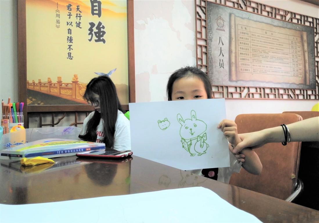这次的梅泉支教如期进行,有所不同的是,这一期小朋友们不仅需要脑力活动还有更多的体力锻炼,因为这期的主题是“趣味运动会”。作为热身项目,小朋友们先在室内开始绘画游戏,要求是画出自己最喜欢的小动物,大家天马行空,完全不局限于平常生活中的动物,还有让人意想不到的外星物种。将近半个多小时过去之后,志愿者们带领小朋友们来到室外。今天阳光充足,是个室外活动的好日子。第一个活动是顶沙包行走,顾名思义,就是头顶沙包走直线,谁又快又稳就是赢家。刚开始小朋友们都性子急,不到一半沙包就从头顶掉落,只能从头再来。接着,志愿者们做出了示范,这给小朋友起到带头作用,接下来的比赛中小朋友们都稳步进行,速度相差也不大。最后一个活动是背对背气球,也就是一名志愿者一位小朋友背对背夹着气球不让它掉落或压爆行走,也追求又快又稳的配合。最后排名前三位胜出并颁发奖品,其他的小朋友们也有鼓励奖。这一天的梅泉在欢声笑语中接近尾声。