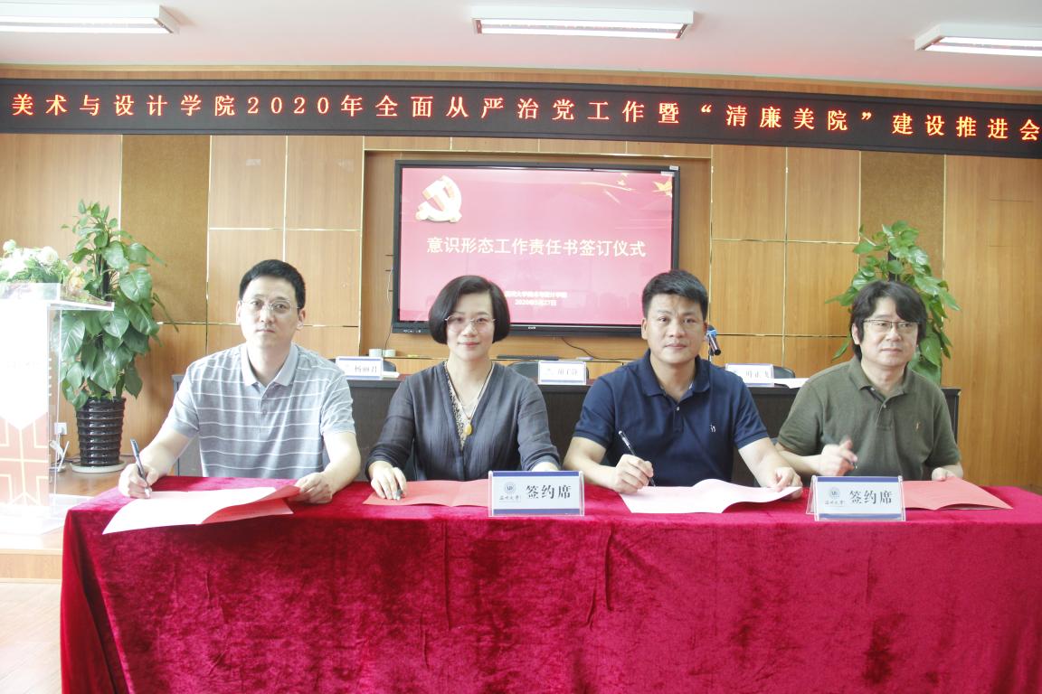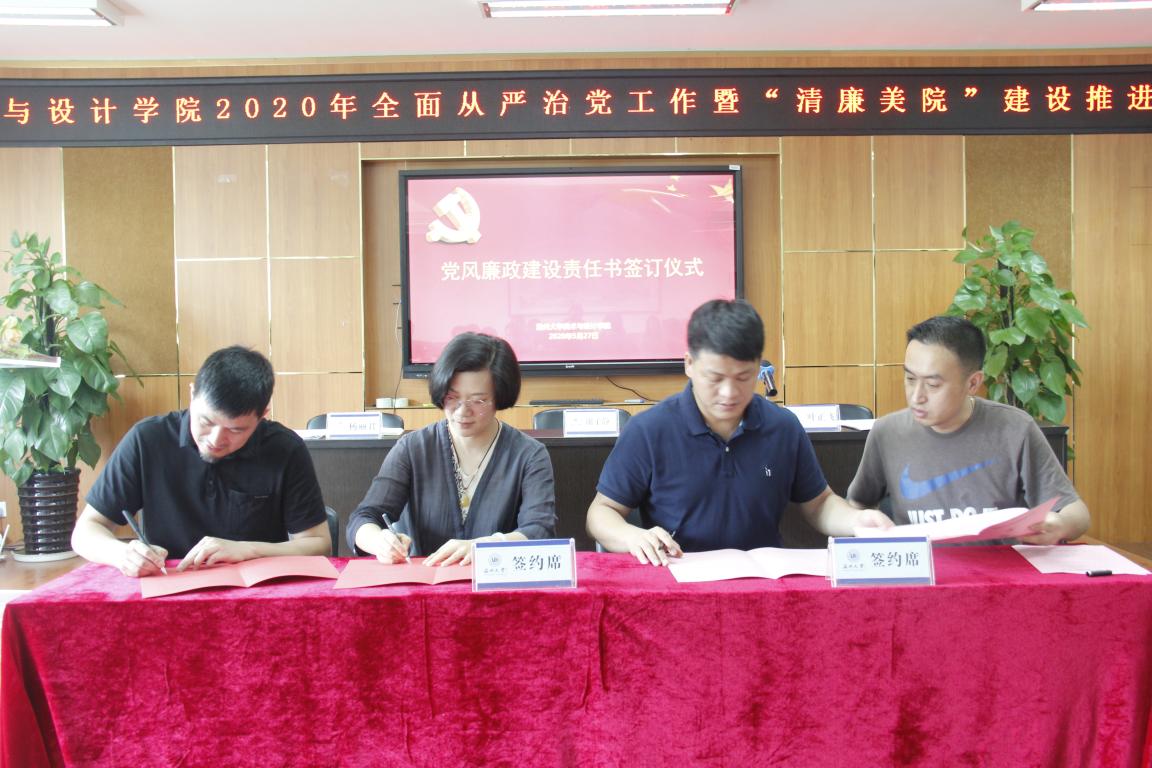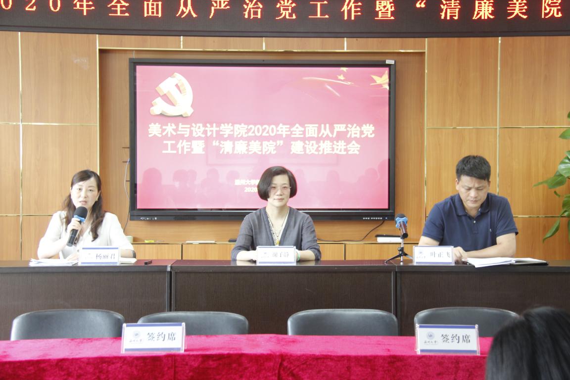 5月27日下午,beat365亚洲体育在线官网在美术楼2B 4001召开2020年全面从严治党工作暨“清廉美院”建设推进会,学院全体班子成员、学院各二级单位负责人、学院全体纪委成员参加会议,会议由学院党委副书记、纪委书记杨丽君主持。 会上,杨丽君副书记传达了beat365亚洲体育在线官网2020年全面从严治党工作暨“清廉温大”建设推进会的会议精神,要求学院全体中层干部认真学习贯彻校党委书记谢树华、校长赵敏和校党委委员、纪委书记、省监委驻温大监察专员杨林书在大会上的重要讲话精神,结合学院实际工作,进一步加强政治建设、筑牢“清廉之基”,加强组织建设、打造“清廉之柱”,加强作风建设、营造“清廉之风”,加强监督执纪、构建“清廉之治”,切实扛起“三个地”的使命担当,全面落实“四责协同”机制,一体推进“三不”建设,立德树人、勠力同心,为学院各项事业发展提供政治保障。 叶正飞书记就加强学院全面从严治党工作做重要部署,强调重点做好五个方面的工作,一是要把政治建设放在首位,坚决做到两个维护、树立四个意识、坚定四个自信;二是要把思想建设作为总开关,用习近平新时代中国特色社会主义思想武装头脑;三是要把组织建设摆在突出位置,夯实学院事业发展的基础;四是要进一步加强作风建设,营造良好政风、院风、教风、学风;五是要进一步加强监督执纪,扎实推进全面从严治党工作,扎实推进学院全面从严治党工作取得新的成效。 会上,学院院长谢子静和党委书记叶正飞与学院各二级单位负责人分别签订了“beat365亚洲体育在线官网党风廉政建设责任书”、“beat365亚洲体育在线官网”两个责任书,学院每位中层干部都签订了廉洁自律承诺书,夯实学院党风廉政建设,落实全面从严治党责任。 之后,杨丽君副书记为学院全体中层干部做题为“建设清廉美院,为发展保驾护航”党风廉政建设专题辅导报告。
