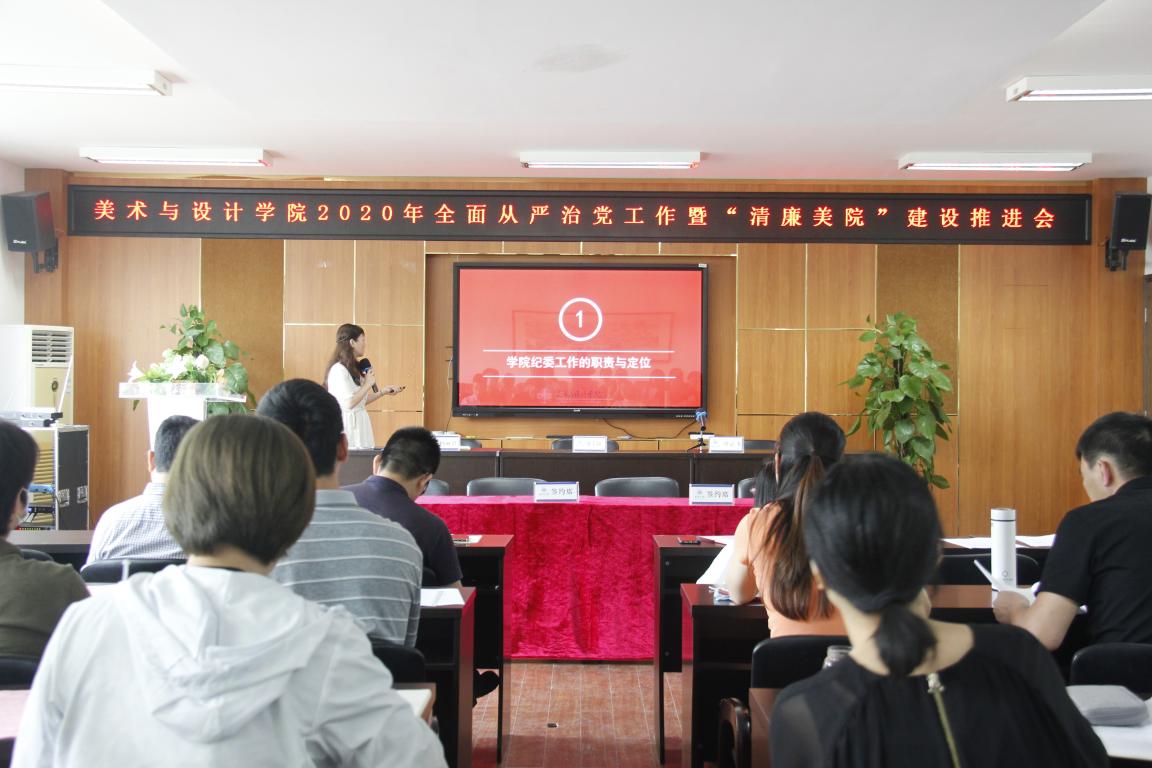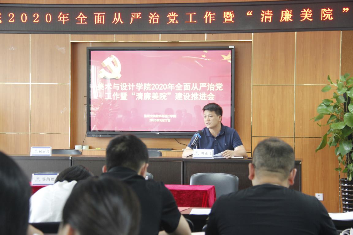 5月27日下午,beat365亚洲体育在线官网在美术楼2B 4001召开2020年全面从严治党工作暨“清廉美院”建设推进会,学院全体班子成员、学院各二级单位负责人、学院全体纪委成员参加会议,会议由学院党委副书记、纪委书记杨丽君主持。