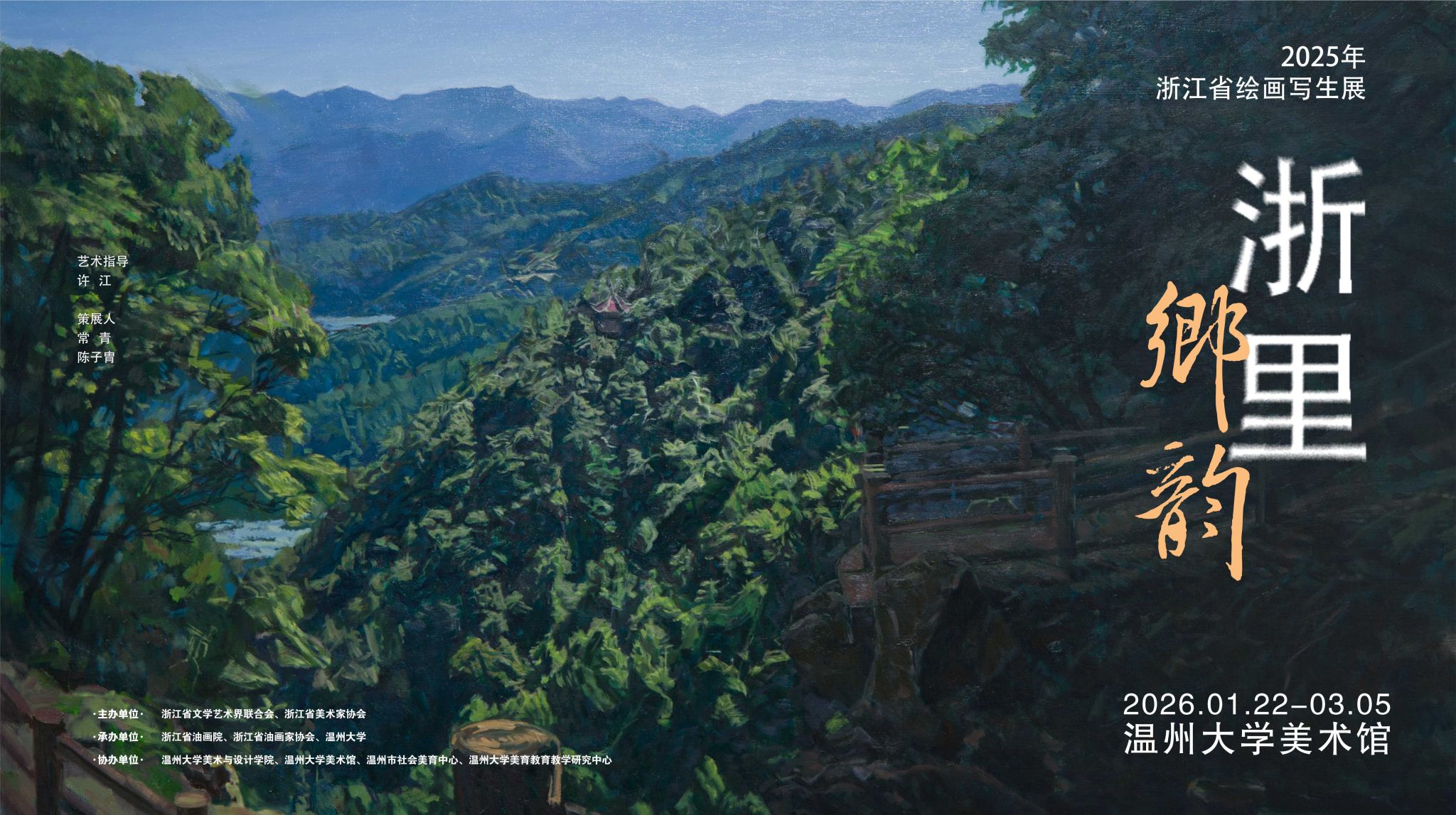 展览预告|“浙里乡韵”浙江省绘画写生展浙里乡韵——2025年浙江省绘画写生展主办单位浙江省文学艺术界联合会浙江省美术家协会承办单位浙江省油画院浙江省油画家协会beat365亚洲体育在线官网协办单位beat365亚洲体育在线官网beat365亚洲体育在线官网美术馆温州市社会美育研究中心beat365亚洲体育在线官网美育教育教学研究中心展览时间2026.01.22-02.05展览地址beat365亚洲体育在线官网美术馆典藏馆(beat365亚洲体育在线官网北校区)展览现场